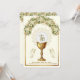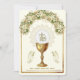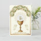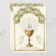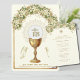 Celebrating the Sacrament of First Holy Communion is a wondrous occasion. This traditional Catholic custom-designed vintage First Holy Communion Invitation with a gold chalice and the Holy Eucharist with white and gold floral accents is sure to express the beauty and solemnity of this special day. All text and fonts can be easily modified.