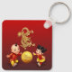 Festive traditional Chinese greeting with firecrackers, Lucky knots and auspicious clouds + golden Dragon paper-cut + two cute children to wish Happy New Year or Birthday. Design on Square keychain with monogram or first name to personalize in back. Matching greeting card, postcard, sticker and more...