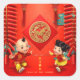 Festive traditional Chinese greeting with firecrackers, Lucky knots and auspicious clouds + golden Horse paper-cut + two cute children to wish Happy New Year. Design on square sticker. Matching greeting card, postcard, red envelope for kids, square flat card and more soon... Perfect for Chinese New Year of the Horse 2026.