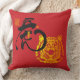 Traditional Chinoiserie Golden Tiger Symbol Red Throw Pillow