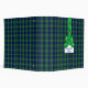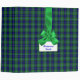 Classic blue and green tartan plaid binder made with a traditional clan Douglas pattern. Graphics of a green satin looking ribbon and bow, hangs down on the front cover, with a white text plaque. Blue custom text is ready to personalize to read anything you want. Great for home, office, school notebook, scrapbook, or photo album. Just add the inserts, from your local office supply store, to make this great binder what ever you want.