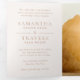 Traditional style tri-fold wedding invitation featuring a simple yet elegant design with your first names in a large serif font.