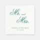 Classic style Wedding Napkin featuring "Mr. and Mrs." in an elegant calligraphy typography along with your names and wedding date. All text is a jewel tone emerald green over a white background and may be changed to any colours you wish by clicking the "customize" button. These napkins are a great way to add a personal touch to your reception, engagement party or rehearsal dinner and are perfect for a formal wedding.