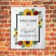Design features elegant sunflowers, roses, and daisies with a golden yellow, red and white fall colour palette. Design also features a charcoal grey frame. You can change the background colour on the front and back to the colour of your choice or leave both set to white.