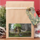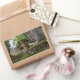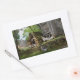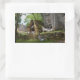 Rectangular photo sticker with geese walking towards their traditional stone home on a foie gras goose farm near Sarlat-la-Canéda in the Dordogne region, Perigord, France.