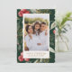 Traditional Greenery Berries Two Photos Christmas Holiday Card