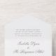 Unique All In One wedding invitation template with rsvp card for a convenient and low cost option for budget savvy couples. The simple design features a traditional wedding invitation including the hosting parent's names along the name of the bride and groom in an elegant calligraphy. All text is in grey over a white background and may be changed to any colours you wish by clicking the "customize" button. This classic style wedding invitation suite is perfect for a formal wedding.