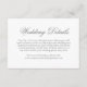 Traditional wedding enclosure card with the word, "details" in an elegant calligraphy. All text is in medium grey over a white background and may be changed to any colour you wish by clicking the "customize" button. Use these enclosure cards to provide directions and any other important wedding details that your guests may need to know such as hotel accommodations, parking, shuttle information, etc. This classic design is perfect for a formal wedding.