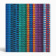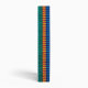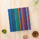 A traditional fabric weave pattern found in Guatemala. The design is bright and multicolored with red, blue, and yellow stripes. This is a photograph of fabric.