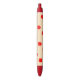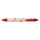 This pen showcases an irregular Pattern of red polka dots over a yellowish surface.