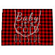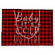 Beautiful, unique, classic, trendy, pretty and decorative red and black lumberjack tartan pattern design with a bright red and white border. And fun "Baby Its Cold Outside" quote text written in typography.