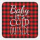 Beautiful, unique, classic, trendy, pretty and decorative red and black lumberjack tartan pattern design with a bright red and white border. And fun "Baby Its Cold Outside" quote text written in typography.