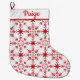 This delightful Christmas stocking features a charming red and white Scandinavian pattern, evoking a sense of cozy, Nordic holiday traditions. The intricate design adds a touch of festive elegance to your holiday décor that is not only beautiful but also durable, ensuring it becomes a cherished part of your Christmas celebrations for years to come. Personalize by adding your name, making it a unique and thoughtful addition to your mantelpiece. Perfect for family members or as a heartfelt gift, this personalized stocking will bring warmth and joy to your holiday season.
