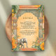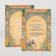 Amaze your guests with this elegant south Indian theme wedding details enclosure card featuring beautiful traditional columns and vintage architectural elements decorated with marigold flowers and banana leaves.