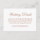 Traditional style terracotta wedding enclosure card with the word, "details" in an elegant calligraphy. All text is in burnt orange / rust over a white background and may be changed to any colour you wish by clicking the "customize" button. Use these enclosure cards to provide directions and any other important wedding details that your guests may need to know such as hotel accommodations, parking, shuttle information, etc. This classic design is perfect for a formal wedding.