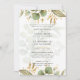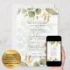 Emerald greenery and gold leaves art design with a gold cross, classic elegant arch frame design with parents names and scripture (can be edited) by LeahG.
