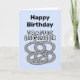 I needed a nice looking 90th Birthday card for a very dear friend. I selected the sample that would work for me, and added the name. I was so surprised on the fast delivery, and very pleased with the results. My card looked so much richer than on the web-site. Such an original, great looking 90th birthday card. I will be definitely ordering more cards in the next little while. I certainly recommend Zazzle products. Amazing designs...