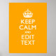 Your personalized Keep Calm saying on a fine custom traffic yellow accent colour style decor. A personalized Keep Calm style saying on a one of a kind gift. Humourous or whimsical try on your creative words on two editable lines of text. Remember to use CAPITAL letters for best results.