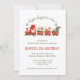 Charming Christmas train birthday invitation featuring Santa’s festive party express makes this adorable “Chugga Chugga Two Two” design perfect for your little one’s holiday celebration. With a whimsical watercolor illustration of a red and green Christmas train filled with Santa, gifts, and festive friends, this invitation captures the joyful magic of a winter wonderland birthday. The playful typography and classic holiday color palette of red, green, and gold create a warm, nostalgic feel that delights both children and parents. The back of the invitation showcases a coordinating vintage-style candy cane stripe pattern in festive red, cream, and green tones, adding a polished and cheerful finishing touch that ties the whole design together beautifully. This customizable kid's birthday invitation is easy to personalize with your child’s name, event details, and RSVP information. Perfect for winter birthdays, it adds a storybook charm that makes every guest excited to join the fun aboard Santa’s Party Express.