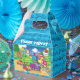 raster graphics.Artist by Zolotareva.Gift box with cars and train for little boys.Cars and the train a pattern on a blue background for the boy.You can add name or custom text.