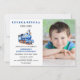 🚂 🎉 Tous à bord de l'aventure anniversaire avec notre invitation photo d'anniversaire de train personnalisable, conçue spécialement pour le grand jour d'un garçon! Doté d'un charmant train d'aquarelle, cet invitation est le billet idéal pour démarrer un bain d'anniversaire sur le thème du train. Il vous permettra de faire un voyage de plaisir, d'excitation et de moments mémorables. Préparez-vous à une journée de fête joyeuse et d'escapades ludiques sur les pistes ! 🛤️ 🎈