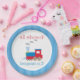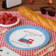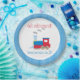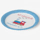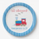 All aboard! Have a fun train themed birthday party with this bright and cheerful paper plate. Engineer stripes featured as the base pattern. Personalize the text and name. Coordinates with the entire Train Birthday Party Collection.