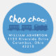 Designed to coordinate with the Lea Delaveris Design train birthday collection, this sticker that features a blue train against a lighter blue background with white choo choo as the smoke can be used as an envelope seal and return address label for birthday party invitations.