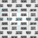 A black and white pattern of antique style railroad locomotive train cars.