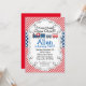 Train Engine, Red Stripes Blue Polka Dot Birthday Invitation