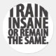 Train insane or remain the same classic round sticker