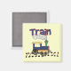 Primary colours train on a track and blue text edged in red that reads "Train" on train T-shirts, mugs, mousepads, tote bags, and other train gear, perfect for the little engineer or conductor!