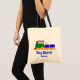These bags were super cute (I purchased 3). The material is more of a canvas look & feel. The colour of the bag is slightly off white, but the letters look exactly as pictured. I took 3 photos in different lighting. Would recommend! I liked how there was an option to choose the font and colour of the name. The words are legible and the colours are exactly as pictured.