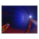A drawing of a planet with a comet streaking past and a train travelling towards it.