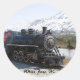 Train à l'ancienne traversant le White Pass jusqu'à Skagway, en Colombie-Britannique, avec une montagne enneigée dans l'arrière - plan. Réimprimé sur ces autocollants.