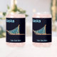 Faites-leur savoir ce que vous faites pour vous amuser pendant l'hiver. Un traîneau à chien superposé sur un arrière - plan étoilé. Lecture de texte, "Alaska" apparaît en bleu et blanc brillant. Vous pouvez ajouter votre propre texte supplémentaire à la fois sur le sac de traîneau et au bas.