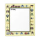 Planes, trains and automobiles, Oh My! Your little boy will be so excited to have his own custom notepad that's lined with a bus, motorcycle, car, helicopter, plane, boat, tractor, construction vehicle, train, plane, 18 wheeler and even a unicycle! The outside border where all the vehicles are has a yellow background. The inside edge is black with a yellow stripe in the middle to look like a roadway. The rest of the notepad is white and your child's name is in the upper left corner. This would make a great gift for a young boy's birthday, for school or even to add to his Easter basket!
