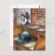 Designs by Susan Savad -- The station master was the person in charge of the railway station. This quaint station master's office contains an old fashioned typewriter and an vintage fan with blades on a wooden desk with cubbyholes.