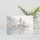 This wedding enclosure card features a serene watercolor landscape with soft blues and greens, capturing the tranquillity of a lakeside scene. The design includes stylized pine trees on gentle slopes, creating a peaceful and natural atmosphere. Elegant script typography highlights "The Details," while smaller serif font provides additional information, offering a sophisticated contrast. Perfect for conveying essential event details, this card exudes a calm and inviting mood, ideal for weddings or special occasions.
