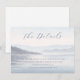 This enclosure card features a serene watercolor landscape with soft blues and grays, creating a tranquil and elegant atmosphere. The design showcases a calm body of water reflecting misty mountains, evoking a sense of peace and natural beauty. Prominent cursive typography highlights "The Details," while clean sans-serif text provides instructions for further information, making it ideal for formal occasions like weddings. The minimalist yet sophisticated style emphasizes simplicity and clarity, inviting guests to explore more through the provided website link.