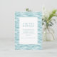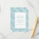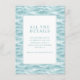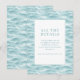 This wedding enclosure card features a serene and modern design with a central white square framed by a thin teal line, set against a textured background of wavy water in soft blues and turquoise. The minimalist style emphasizes clarity and simplicity, using elegant serif typography to highlight the main heading "ALL THE DETAILS" and guide guests to visit a customizable website for more information. The calming colour palette and abstract water representation create a tranquil mood, making it perfect for providing event details while evoking a sense of anticipation and elegance.