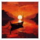 Tranquil Boat in Fiery Sunset – Serene Nature Art Poster