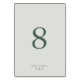 Tranquil Green Emerald Plain Simple Sea Glass Wedding Table Number