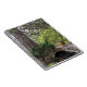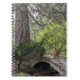 A personal sized, spiral bound notebook that features the photo image of a tranquil Japanese garden setting with wooden, arched footbridge and large conifer tree. You may customize your notebook cover to add text if desired. Use as a journal or to keep important notes. Photo: Point Defiance Park Japanese Garden