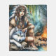 Tranquil scene: Native and wolf by water Fleece Blanket