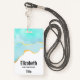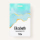 Personalized name badge with a serene summery design. Turquoise / aqua green watercolor image with a wavy faux gold border. Elegant and lovely.