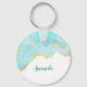A key chain with a serene summery design. Turquoise / aqua green watercolor image with a wavy faux gold border. Elegant and lovely.