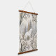 This serene winter forest tapestry features a majestic white wolf at its centre, surrounded by snow-dusted trees in soft tones of cream, brown, grey, and pale blue. A second wolf is subtly nestled in the lower corner, hinting at unseen life within the quiet woodland. With a mix of bare-branched and evergreen trees, framed by delicate decorative elements, this design evokes natural beauty, stillness, and a touch of winter magic. Perfect for nature lovers, animal enthusiasts, and seasonal or fantasy-themed settings.
