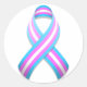 An awareness ribbon of Transgender Pride stripes for acceptance and understanding of trans people. Curvaceous lines add an active, accessible tone to the message of visibility and inclusion.