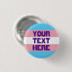 Show off your trans pride with this bold little button! Customize the text font, size, and colour to match you or your organization's needs