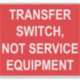 A TRANSFER SWITCH, NOT SERVICE EQUIPMENT sticker label for electricians to use to satisfy the requirements of Article 230.85(E)(1) and (2) in the 2023 National Electrical Code.